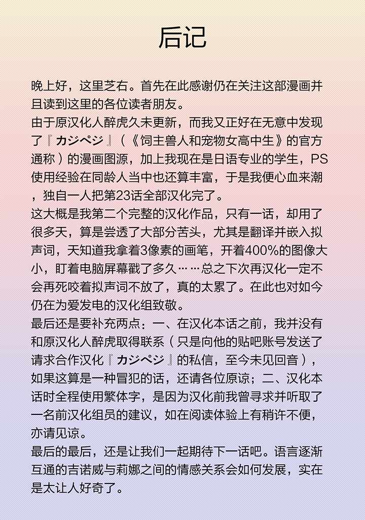 您目前的位置:漫畫聯合國 - 搞笑 - 飼主獸人和寵物女子高中生 - 飼主和寵物 023集