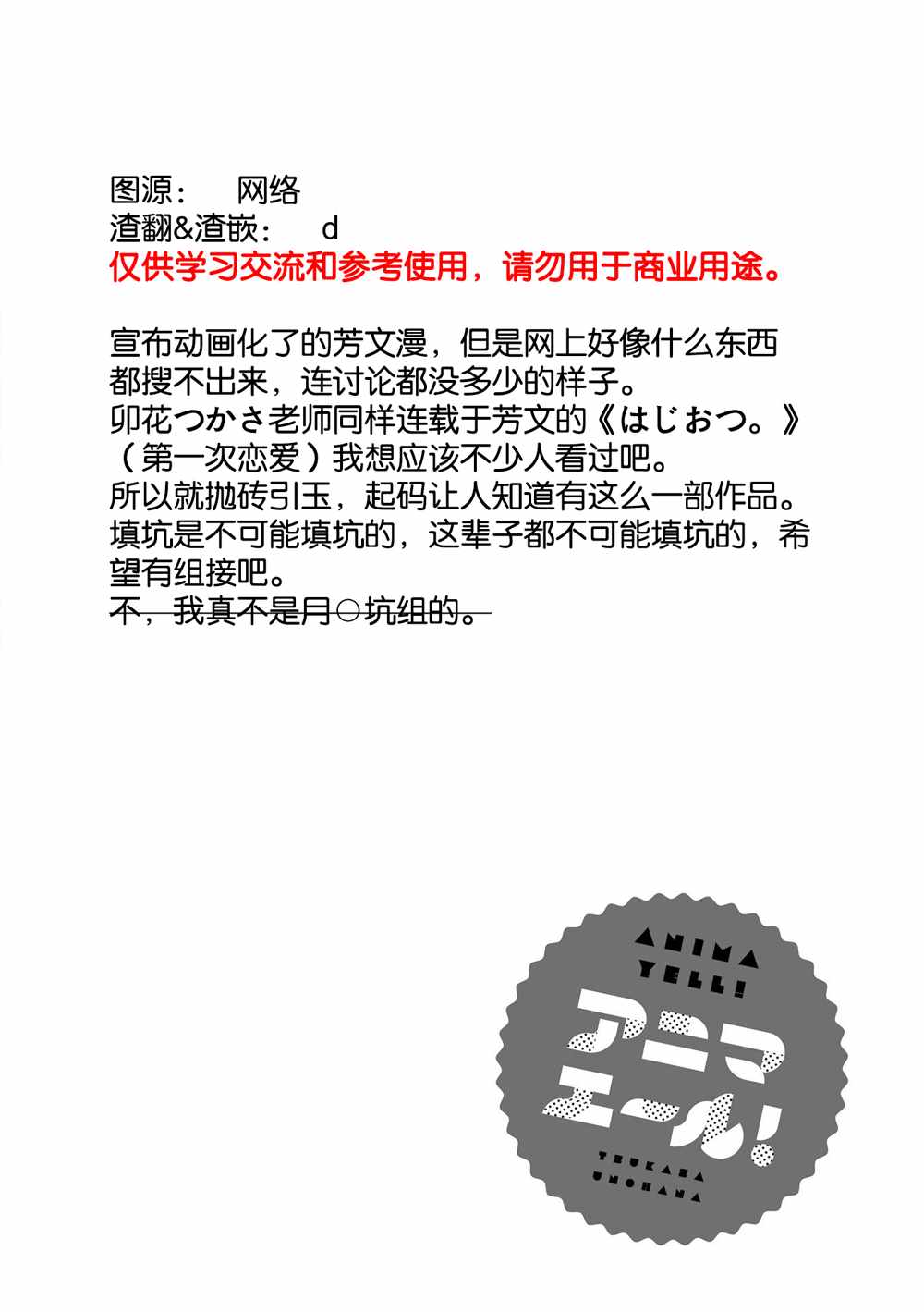 Anima Yell 01卷卷首